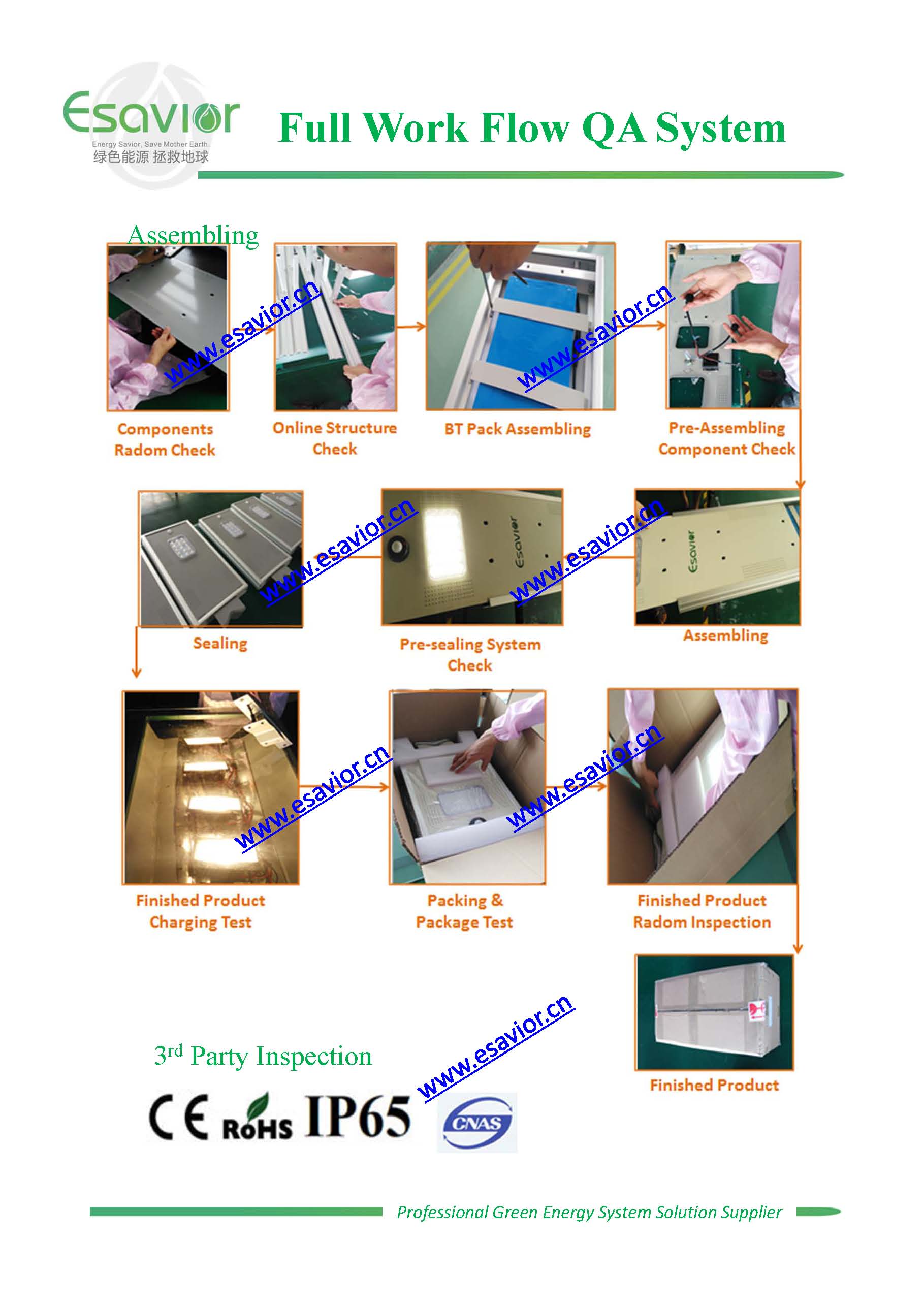 ESAVIOR Full WorkFlow QA System for All in one Solar Street Light/ Integrated Solar Street Light