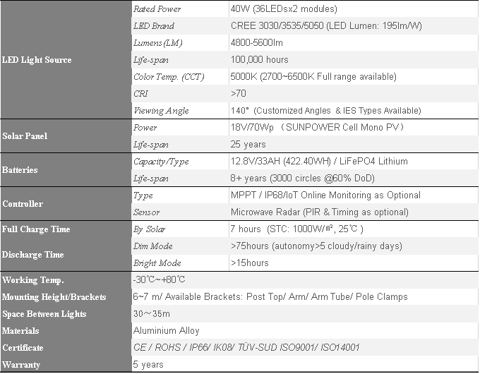 40W Integrated Solar Street Light