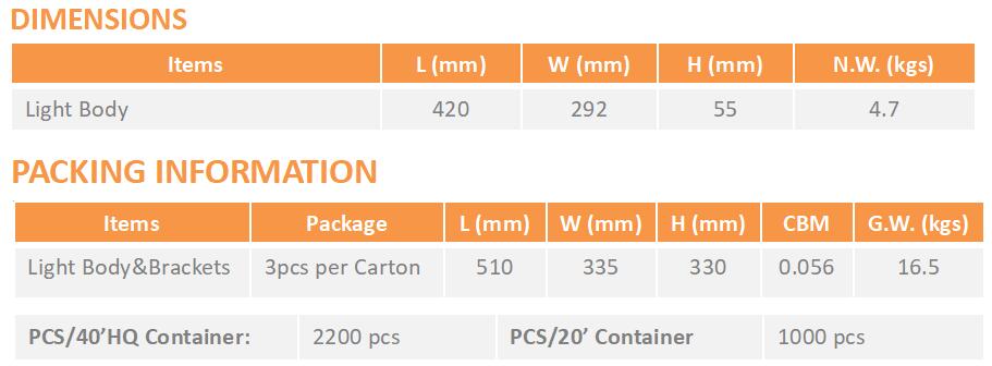 Daylight White 5000K (full color temp. range 2700~6500K available)